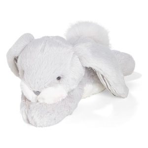 Little Nap Time Nibble Bloom Bunny, your ultimate nap buddy in the softest Bloom Gray! This plush bunny features cozy, nibble-textured fur in a lovely soft gray, with creamy white accents around the snuggly muzzle, fluffy tail, and striped velour-lined ears. Designed to lay sweetly on its belly, this bunny is made for