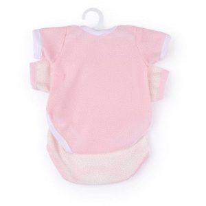 Set of two bodysuits: one white bodysuit with pink polka dots and pink edges, one pink bodysuit with white polka dots and edges. Includes 2 baby onesies Hand wash. For 40cm dolls / My FAO DollsÂ