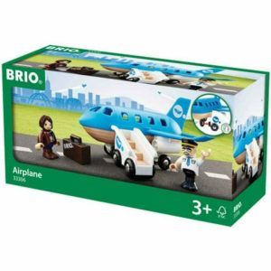 Ready for take-off! The three-seat airplane is now ready for boarding and new, great adventures lie ahead. Includes a blue airplane with a panel that opens to place the passengers, two poseable figures, a rolling stair cart and a suitcase.