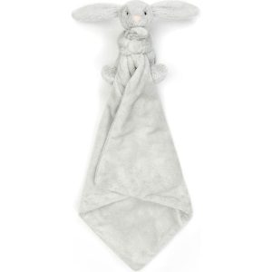 The Bashful Silver Bunny Blankie combines our most loved Bashful Bunny character’s long lop ears, pink suedette nose, embroidery eyes and soft squashy paws with a blankie made from the same cloud soft, silver-grey coloured fur in recycled fibres. Neatly rolled and tied with a Baby Jellycat grosgrain ribbon, this is an