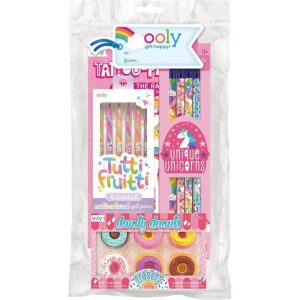 Fill your pages with everything fun and fruity and cool and creative with the Very Beary Sweet Happy Pack! You’ll get a grand collection of fruity scented stickers to match with the Tutti Frutti Scented Gel Pens as well as the Unique Unicorns Graphite Pencils, Dainty Donuts Scented Erasers and now Over the Rainbow Ta