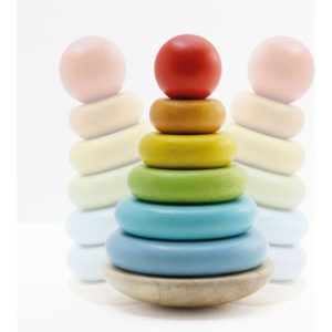 Good old-fashioned fun awaits with this nostalgic wooden rainbow stacker toy. Painted in cheerful rainbow hues, this sustainable treasure comes with a base and 6 stackable parts. Ready to brighten up any little one's play session! Young learners can stack the rings on top of one another to make a tower, a great aid to