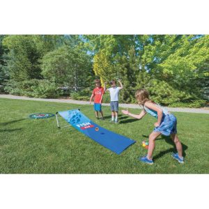Garden Party is a bag-toss game: who will win the most points by getting the most bags in the holes? But remember: the number of points depends on the size of the hole! The bigger the hole, the fewer the points. A timeless classic skill game for children! An updated bag-toss game with weighted bags…