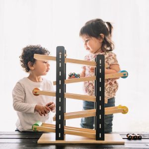 They’ll be off to the races with our Fast Track. Brightly painted with non-toxic paint and 5 natural wood slopes let the races begin. Includes 4 race cars for independent play or with friends. Ages 3+ Material: Plywood Care Instructions: wipe clean with damp cloth PLEASE NOTE: There is a shipping fee associated with