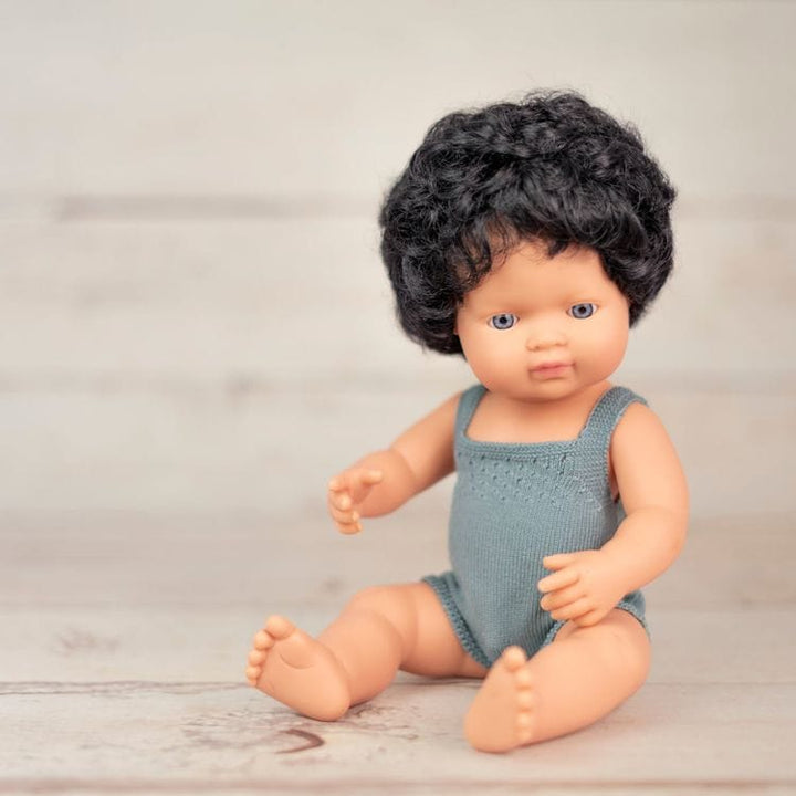Miniland Colourful Edition is a reflection of a diverse society, where every boy and girl is unique. That's why, in this selection of dolls and action figures, you will find a special friend for each child. The one you see now is the dark curly-haired doll, a sweet companion that can become the best gift you give. Addi
