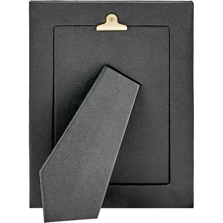 This rich leather frame beautifully accents your favorite photo. Handcrafted frames, wrapped in leather on both sides, with a sturdy metal easel. Convenient rear drop-down door for easy and frequent access to photos. Overall Size: 7" x 9" Opening: 5" x 7" Full grain leather