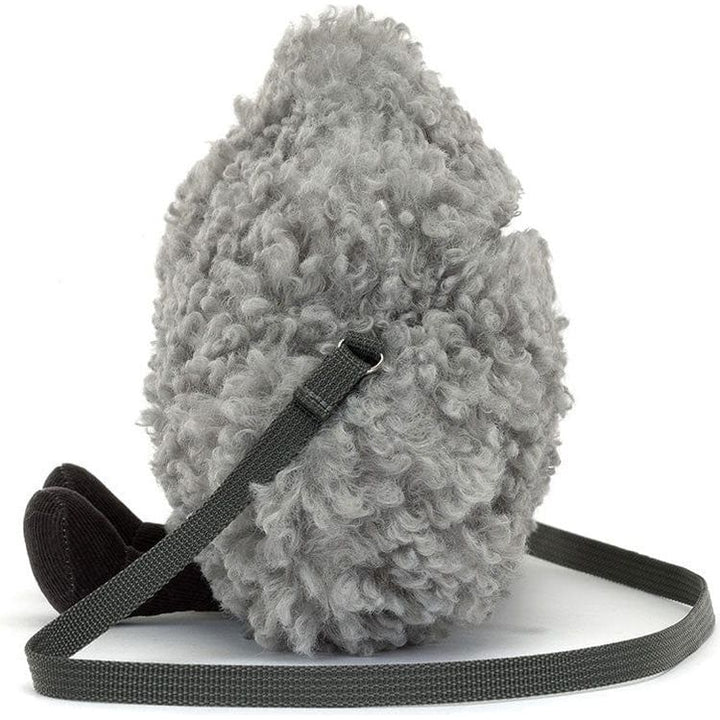 Amuseables Storm Cloud Bag may look a little glum, but it is happy to keep your essentials safe in all weather. In textured grey fur with a stitched frown, this cloud has dark, fine cord boots, and can keep your essentials safe and hands free with a hidden zip closure and a long shoulder strap. Dimensions: 7.9in x 9.4i