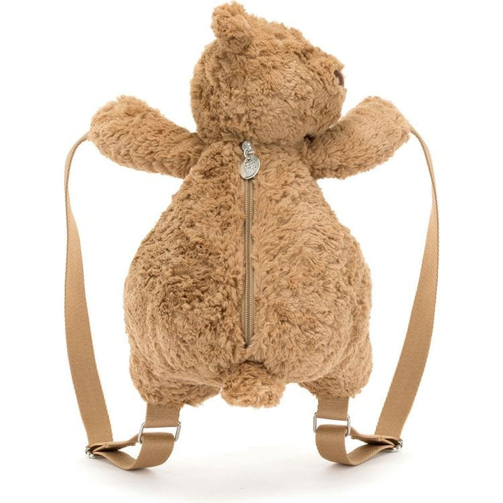 Whether you're off for a forest wander or foraging at the shops, take Bartholomew Bear Backpack. Our tufty, podgy toffee bear has chunky paws and perky ears, with a little tail sticking out. With adjustable straps, a silver zip and a gentle lining, this bag is a portable hug. Tested to and passes the European Safety St