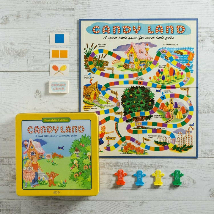 This nostalgic edition of the classic CANDY LAND® game is a “sweet” way for young children to have fun and learn at the same time. The adventure takes you on a wonderful journey, traveling past the Crooked Old Peanut Brittle House, and Lollypop Woods until you eventually reach Home Sweet Home… As this magical experienc