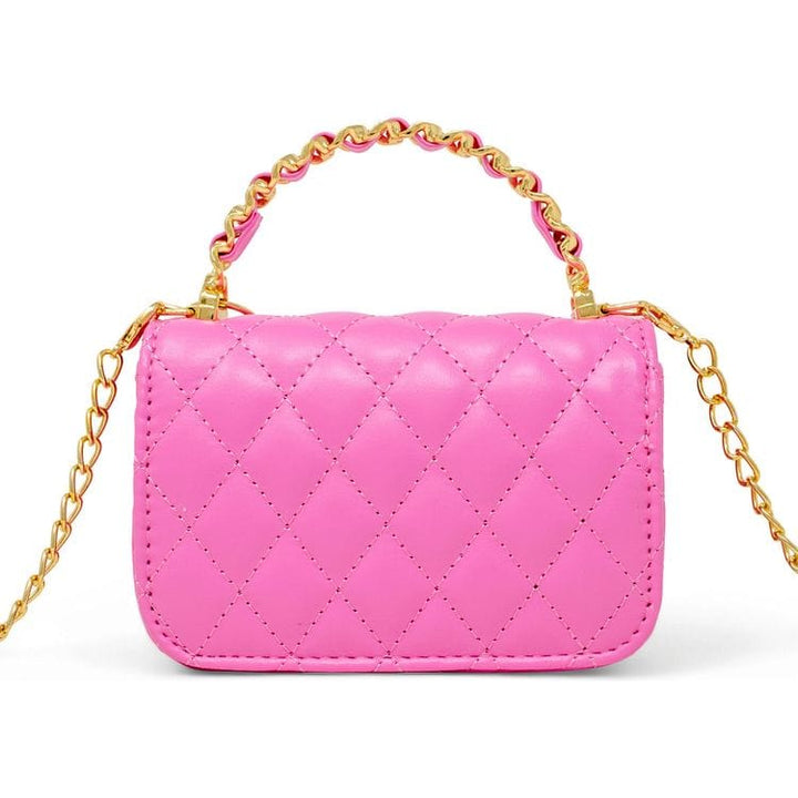 Elevate your little one's accessory collection with this stylish and versatile handbag, perfect for little fashionistas! Designed with a timeless quilted pattern, this bag is both chic and functional. Classic quilted exterior Link chain handle Magnetic closure Comes with multiple adorable hanging charms Dimensions: 6L