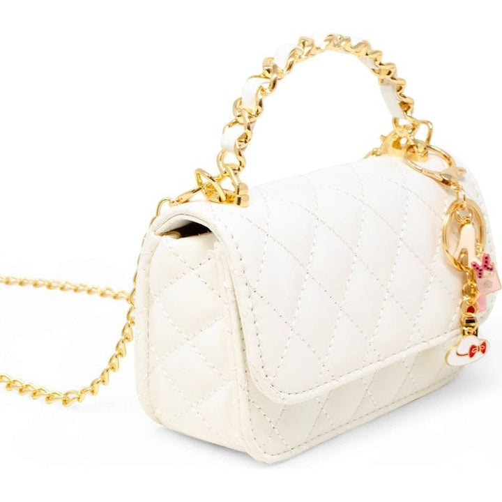 Elevate your little one's accessory collection with this stylish and versatile handbag, perfect for little fashionistas! Designed with a timeless quilted pattern, this bag is both chic and functional. classic quilted exterior Link Chain Handle Magnetic closure Comes with multiple adorable hanging charms Dimensions: 6L