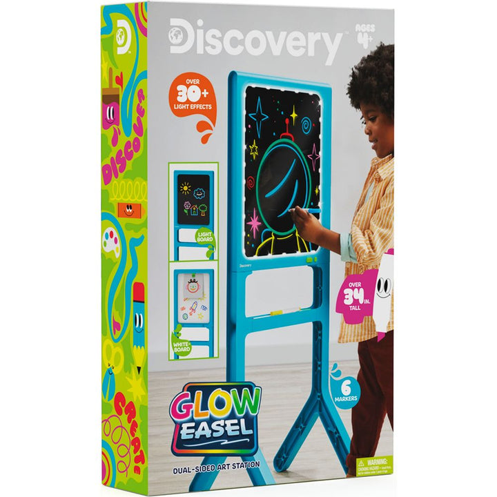 The Discovery™ Glow Easel Dual-Sided Art Station is a dynamic and innovative art tool designed to ignite the imaginations of young artists. This dual-sided easel offers a traditional drawing experience on one side and an exciting illuminated light board on the other, allowing children to explore their creativity with m