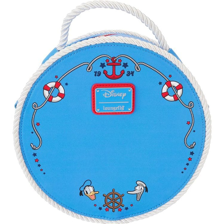 Oh, boy, oh boy—ahoy! Sail away with something fun! Disney’s Donald Duck is the star of this handy accessory, which resembles a fully figural life ring. Donald Duck’s face appears in the center in black and white, but with a flick of a wrist, lenticular details reveal him in color. White roping, along the edges, and fo