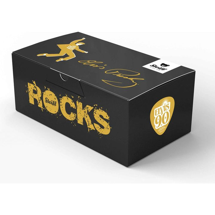 Steiff proudly honors the King of Rock ‘n’ Roll with this special limited edition Teddy Bear celebrating Elvis Presley’s 90th birthday. Born in 1935, Elvis became one of the most significant cultural icons of the 20th century, captivating the world with his unmistakable voice, electrifying performances, and signature s