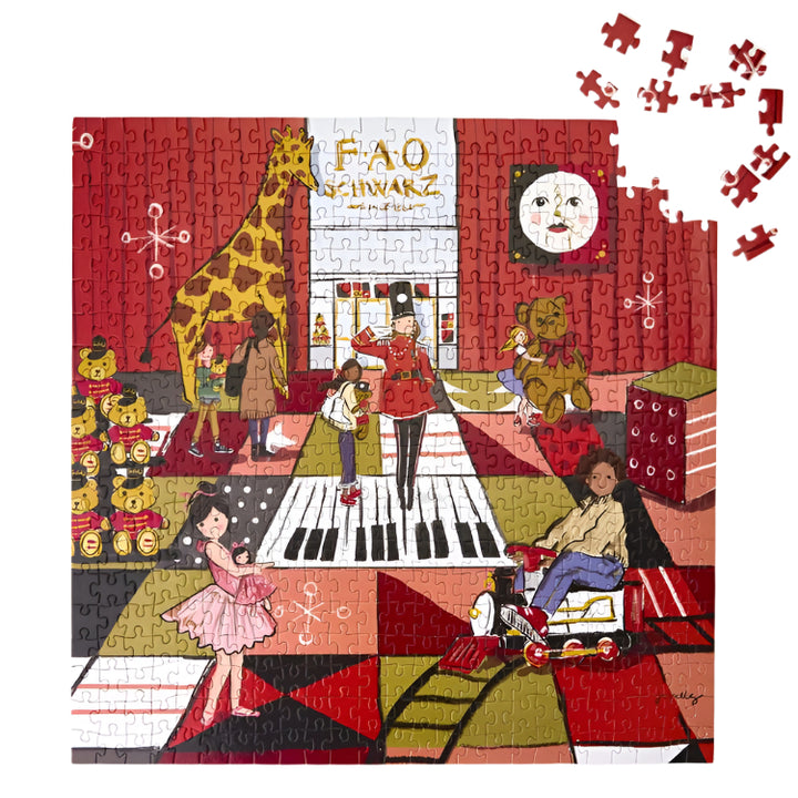 Experience the magic of the holiday season with the FAO Schwarz Twinkling Toyland 500 piece puzzle. This expertly crafted puzzle brings the festive FAO Schwarz toyland scene to life. With 500 pieces, it's the perfect activity for family and friends to enjoy together. Spread joy and challenge your mind with this enchant