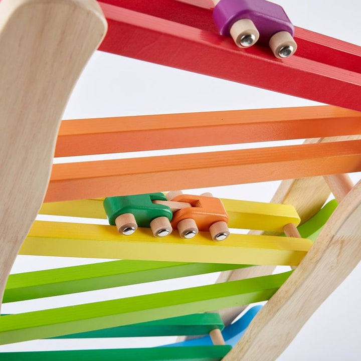 Watch your race cars flip over one another as they come racing down! Make Fast Flip Racetrack a part of your playroom race course. Which of the Race Cars do you think is the fastest Race them all and record the results! Ages 3+ Materials: WOOD, Steel Care instructions: Wipe with damp cloth, air dry; do not immerse in w