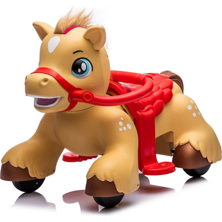Giddy up with the Horse Ride-On Toy! This 12V ride-on is perfect for toddlers aged 18+ months. It features realistic lights and sounds, adding to the fun. The toy includes a comb and brush for grooming the horse's mane and tail, encouraging imaginative role-play. Lights and Sounds: Features engaging lights and sounds t