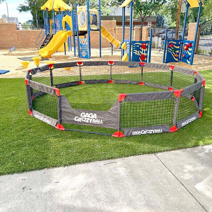 Gaga Ball (also known as Ga-Ga) is a group game similar to dodgeball. It has spread from camps and schools to now become a worldwide phenomenon that we’re bringing to your own backyard! EASY TO PLAY: The game is played in a “Gaga Pit”. The objective is to hit opponents below the knees while avoiding getting hit yoursel