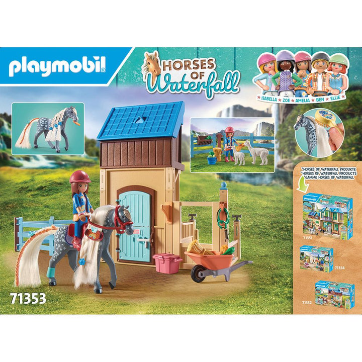 Join Amelia and Whisper at the Pony Stable! Open the fence to the pony stable and join Amelia in caring for and feeding the ponies and Alpaca! Includes lots of storage to hang brindles and saddles and store other grooming equipment. Use the glitter brush to comb through the horse hair or add the hair clips for differen