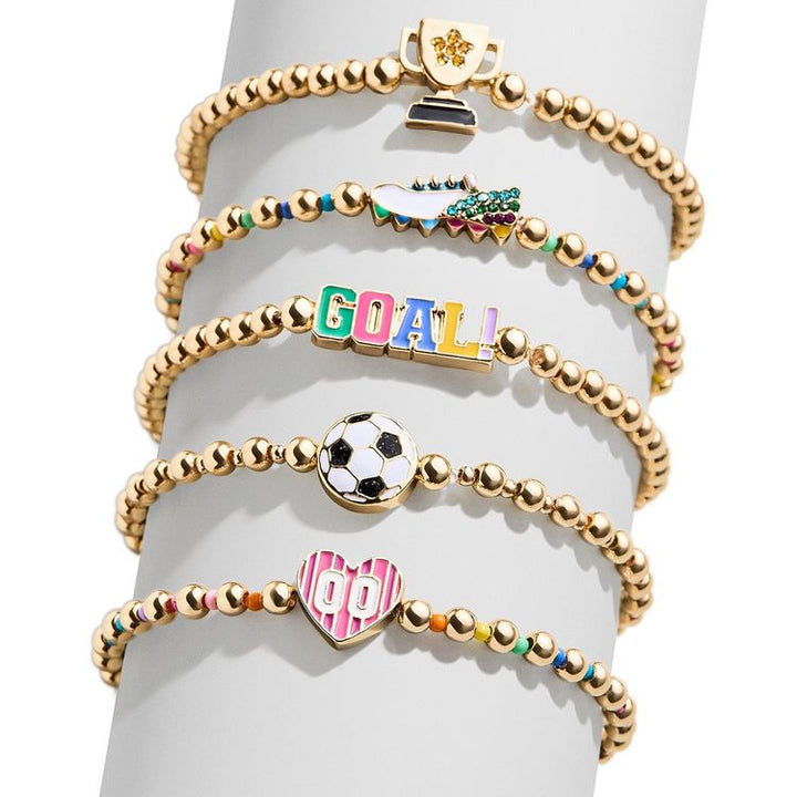 Score big with the Just For Kicks Kids' Pisa Bracelet Set. Mix and match with 5 pisa stretch bracelets — each with its own sporty charm. Perfect for stacking or sharing with friends, this bracelet is gonna be a fave for any little athlete. Stretch bracelet set Set of five bracelets with different charms for each 5" inn