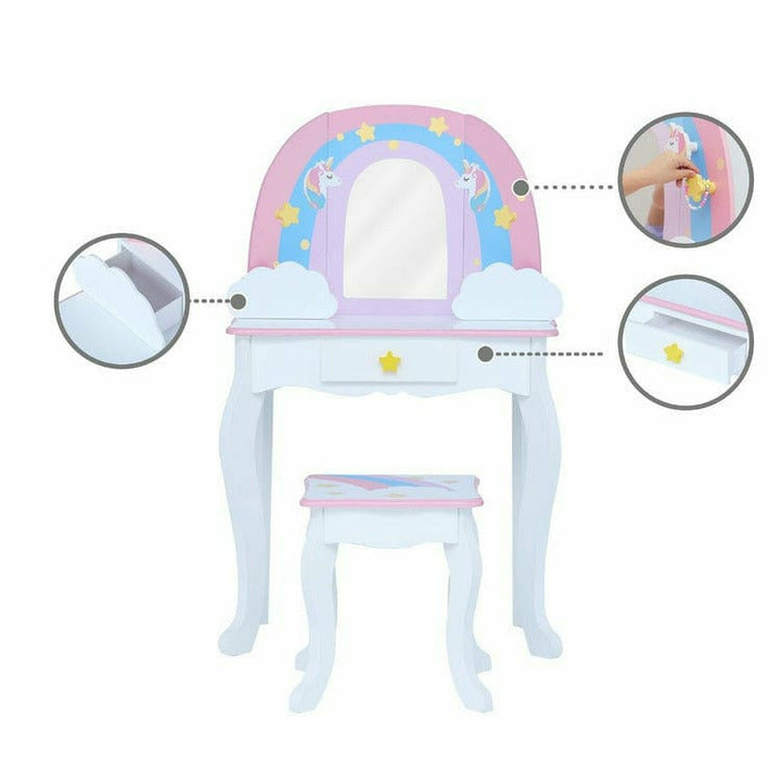 Little Dreamer Rainbow Unicorn Vanity Table and Stool- White