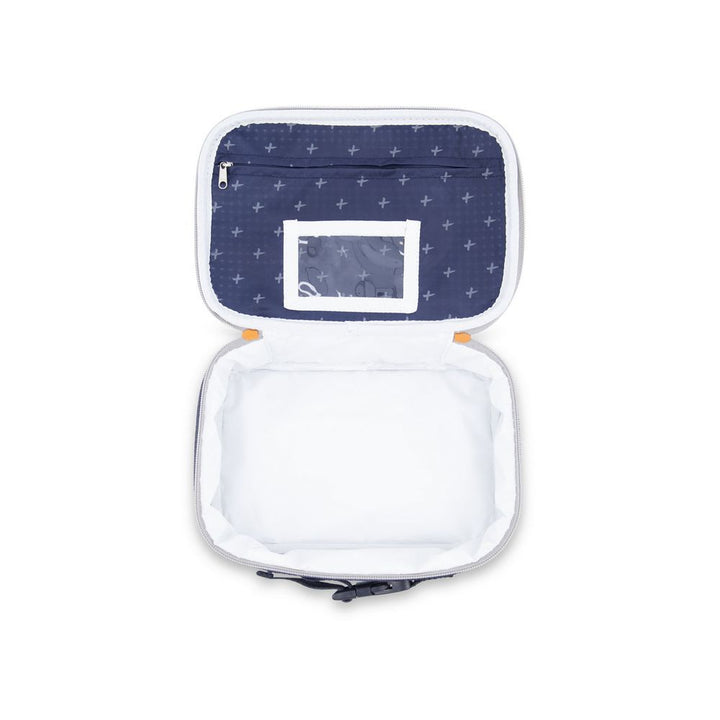 The insulated lunch tote keeps food hot or cold and is easy to carry with you to school. Insulated to keep food hot or cold Easy to carry handle Name tag Buckle to clip lunchbox onto your bag Fits most containers and bento boxes. Fits into all of our backpacks except the little miss Size: 10" W 7" H X 3.5" D + Contents