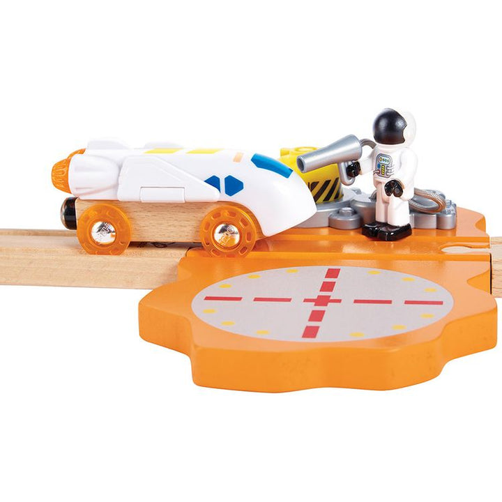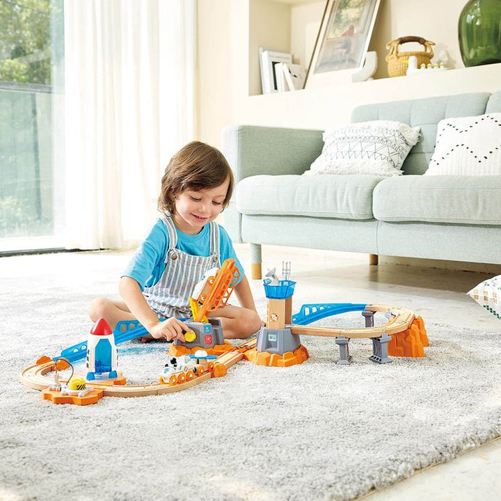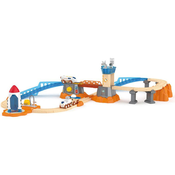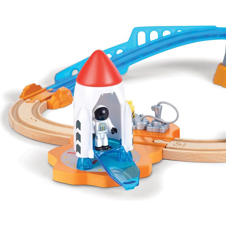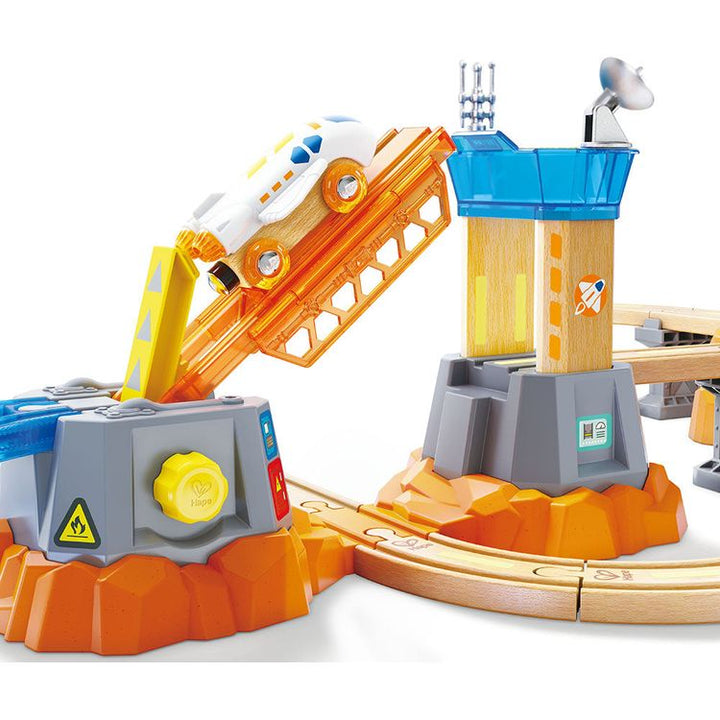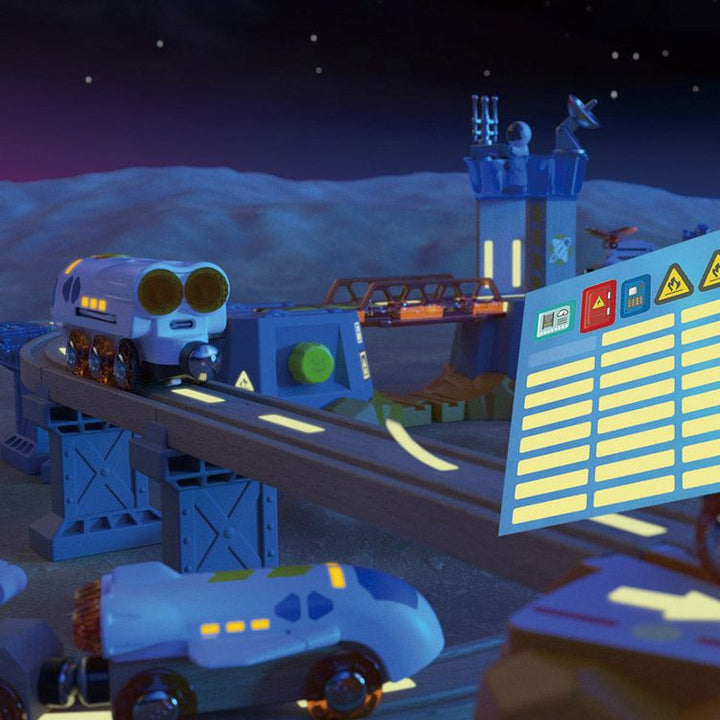 Ground control this is the Mars Launcher speaking! Inspire your mini astronaut as they propel the space train to Mars and explore the red planet with the rover and satellite vehicle. Glow-in-the-dark elements and interactive components enhance imaginative play making it perfect for sparking creativity and cognitive dev