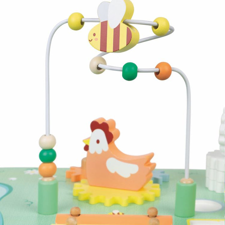 Head off to the countryside and its fields of pretty wildflowers with this multi-activity table, featuring all baby’s favourite farm animals! So let’s get going and help your child discover the 7 activities in this versatile activity table, including: 2 animals that can be stacked in 2 different ways to develop motor s