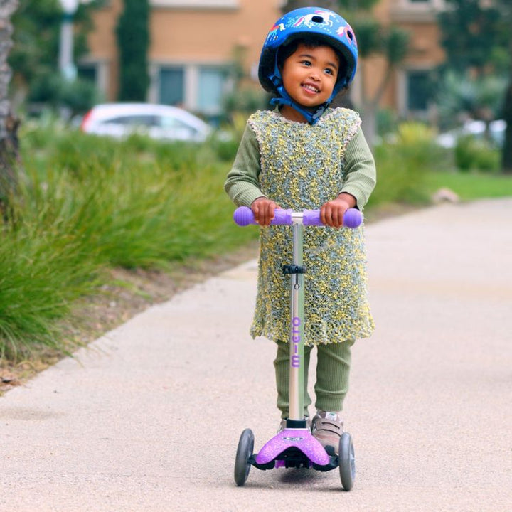 The Mini Glitter LED is a showcase of meticulously-crafted Swiss design. Its new foot deck, adorned with embedded glitter, boasts a captivating blend of style and functionality, sure to be loved by boys and girls alike. Our latest LED wheel design further enhances this fun-filled experience. Just like its Mini counterp