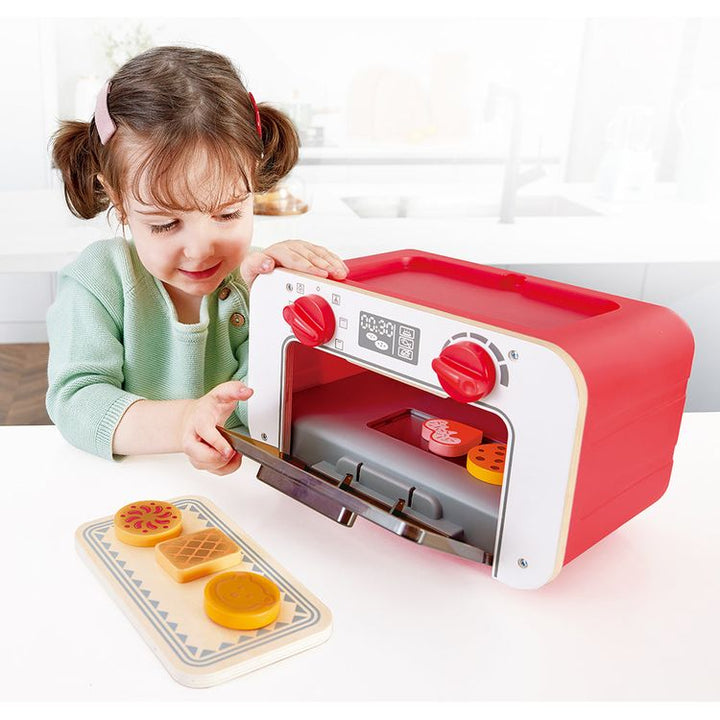 Junior bakers can create tasty treats for friends and family with this magic oven. Fine motor skills are refined as little hands manoeuvre the oven’s dial by setting the timer and serving up their cookie creations. As children role-play in the kitchen, they’ll develop their imagination and storytelling abilities. AIDS