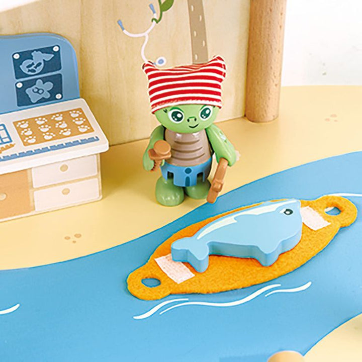 Learn how to care for our oceans with this ocean rescue base playset. Including two turtle figurines and five animals, children will help their turtle friends keep the ocean safe and clean and to look after any animals in trouble. The set features two floors to explore with plenty of activities like a spiral slide and