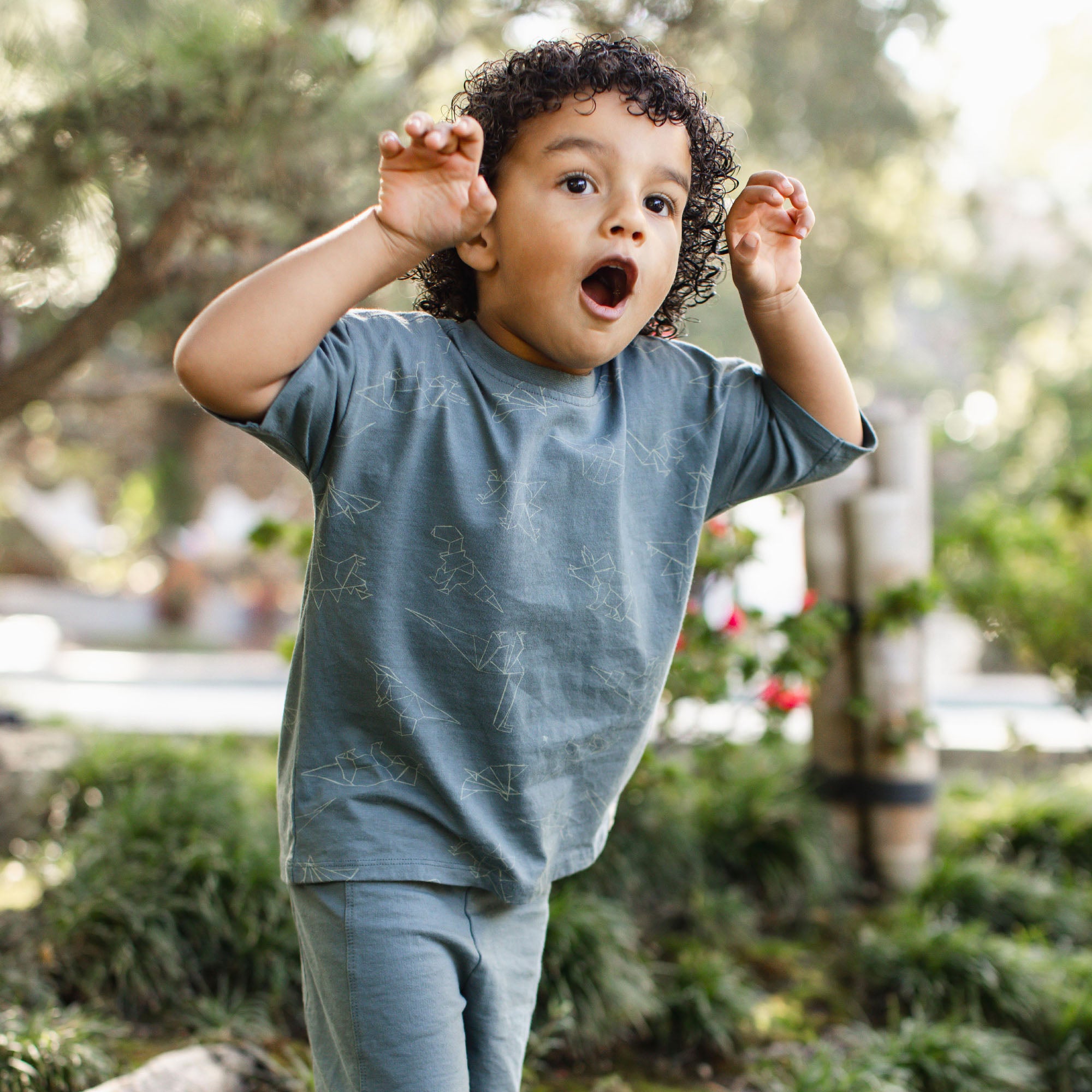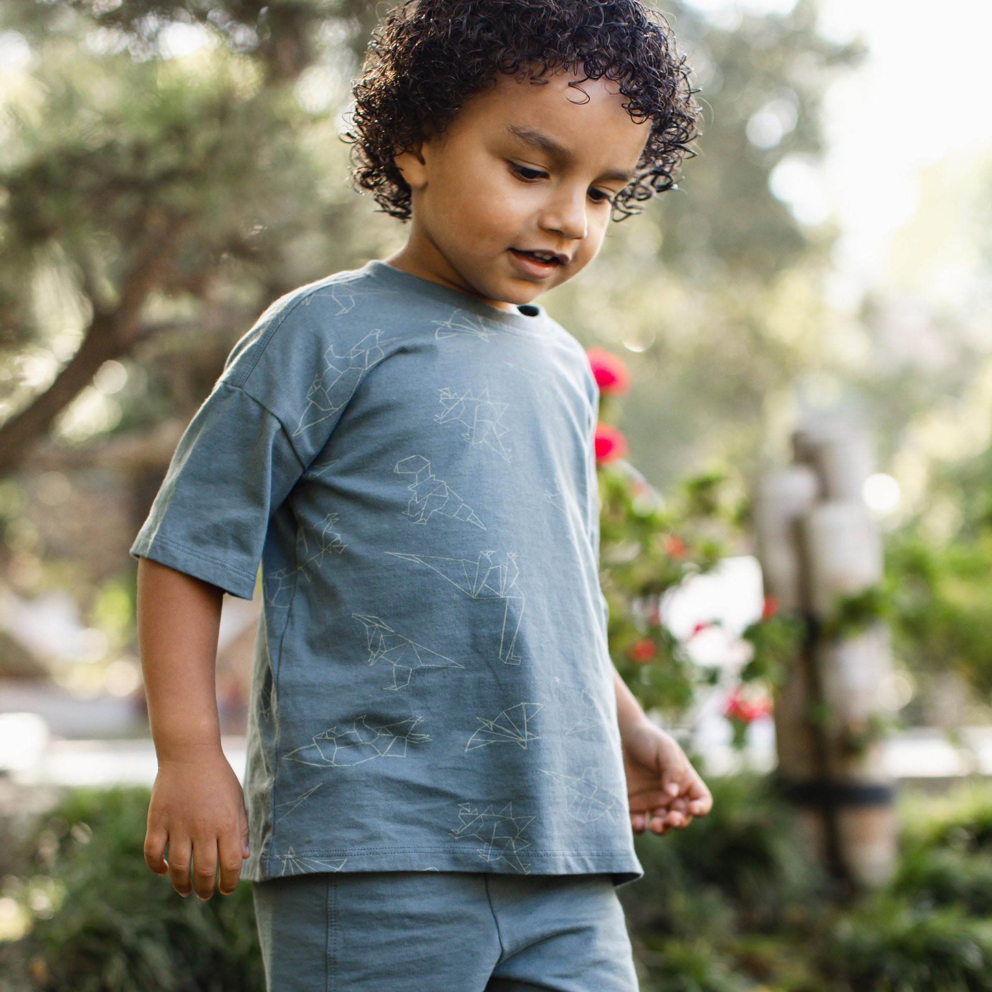 Dinosaurs. origami. and soft cotton combine in this comfy shorts and tee set — perfect for everyday adventures your little one will love.