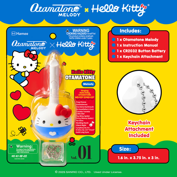 Hello Kitty and Friends meet Otamatone Melody! These supercute special edition mini-sized Otamatones come programmed with several well-known songs kids can play along with, introducing them to new music and helping them learn rhythm! Available in five different styles featuring Hello Kitty, Cinnamoroll, My Melody, Kuro