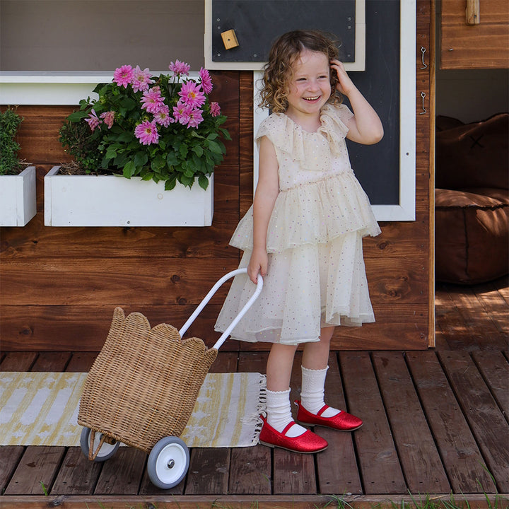 Our beloved Rattan Luggy but with a twist, the Petal Luggy – Natural is perfect for toddlers to store and tote their favourite treasures. This charming Luggy is perfect for carrying treasures, toys, and joining your little one for Springtime fun! Whether for imaginative play or as a thoughtful storage solution, the Pet