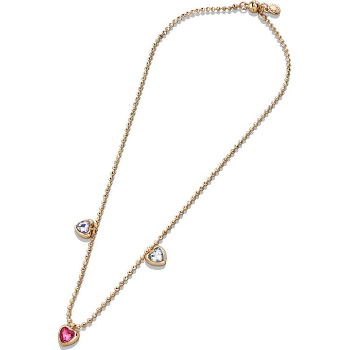 Enjoy some extra love with this 4-piece jewelry set! Inside our pink jewelry storage pouch you’ll find two pisa stretch bracelets — one with classic gold beads and another with colorful multi-shaped gemstones. You’ll also find an adorable charm necklace with three lovely hearts. Mix and match everything in this set or
