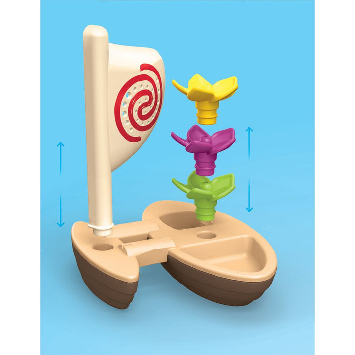 Land Ahoy! The enchanting boat with a cheerful crew on board, inspired by Disney's Moana, sets sail. Moana and the rooster embark on an exciting South Seas adventure. But what floats there in the water? Together with Moana, your child will have fun exploring the water. The colorful flowers can be collected and stacked
