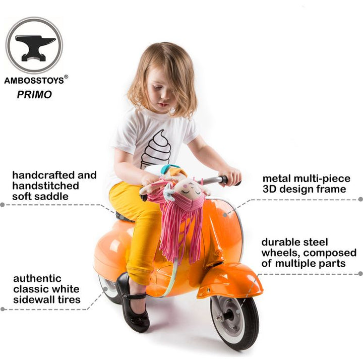 PRIMO is the ultimate toy, as our frame is built for longevity with only durable and high-quality materials. Safety and quality are our top priorities, making the self-propelled PRIMO ride-on scooter ideal for one year old up to 5 years old. Our frame consists of solid metal sheets, welded by hand out of several indivi