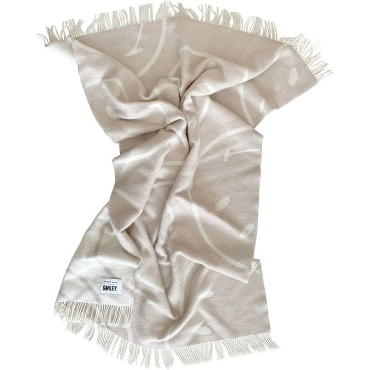 The Smiley Blanket is a thick premium reversable blanket with fringes on the short sides. It's certified with the Woolmark and OEKO-TEX label. Dimensions: 4.25 x 6.5 ft 100% New Zealand Wool Jacquard-woven 100% Renewable & Biodegradable Dry clean PLEASE NOTE: This item does not qualify for free shipping. There is