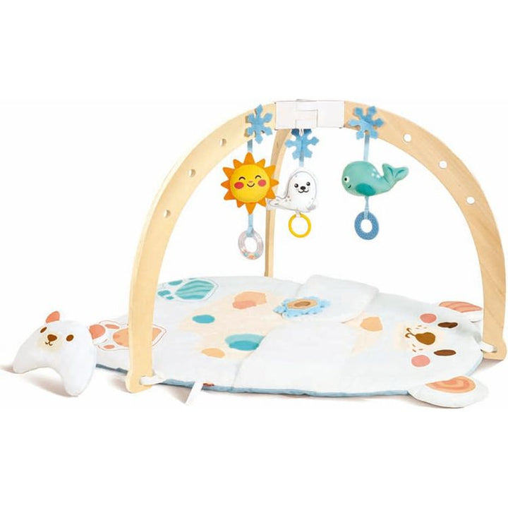 Explore sensory delights with our activity gym. It boasts a soft mirror and customizable cards for budding learners. Additionally, cherish the tummy bear pillow, interactive hanging toys, and crinkly features for comprehensive playtime happiness. Item Weight: 4.85 lbs Product Dimensions (L x W x H): 28.7 x 20.8 x 34.25