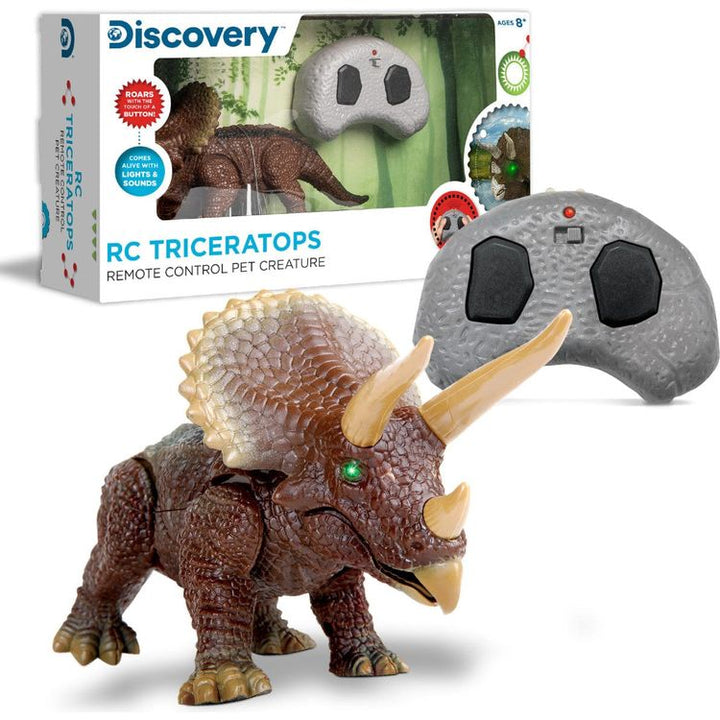 Do your children love anything and everything prehistoric? Â Ignite their minds in a fun, educational manner with Discoveryâ„¢ RC Triceratops figure and watch this Cretaceous period creature come to life right in front of them! Â This small yet fierce remote-control triceratops toy stands at 10-inches, but don't let the ti