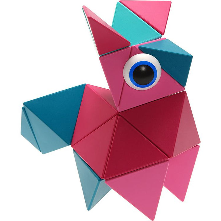 Vivid colors of the Flamingo abound in this 24 piece set includes 4 octahedrons, 8 tetrahedrons, 8 half-tetrahedrons, 4 eyes (in total 24 pieces) + Leaflet. The 24-Piece Set is a medium building set that allows for more characters and objects. Ages 3Y+ Materials: ABS PP magnetite Care instructions: Wipe with damp cloth