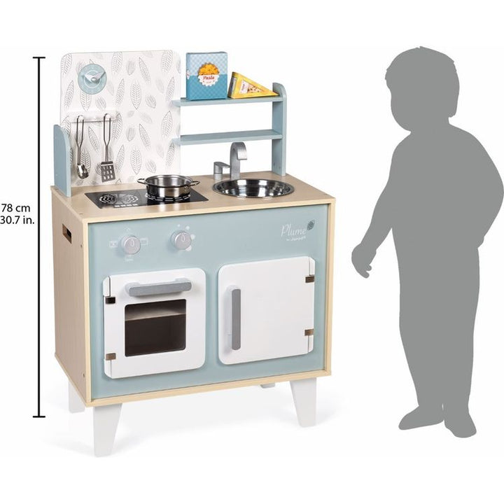Hurry up! It's all kicking off in the kitchen! We’re rushed off our feet making a perfect meal for mum and dad! With this beautiful kitchen set, children from 3 years old will love putting together their own dishes! To help them become great chefs, this kitchen, made of natural wood and decorated in blues and greys, co