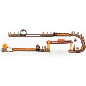 A wooden chain reaction, puzzle and construction game for children aged 5 and over. Children copy the 3 designs in the instructions booklet to build courses, or make up their own – the possibilities are endless! In the box: a tunnel for creating the surprise, a wacky car and funny Zig domino characters. Construction g